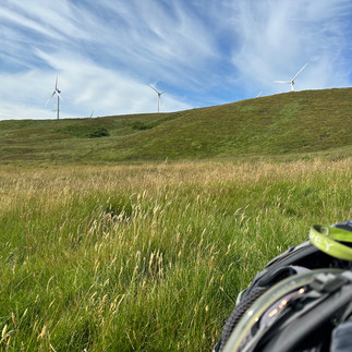 Today is a short day, only 8 miles. This is because there are only two places to stay between Lairg, where I was a couple of days ago, and Tongue, which is on the north coast. One is the Crask, the other is Altnaharra. So my distances for yesterday and today were unequivocally fixed, as is the very long day for tomorrow. It felt luxurious to take it easy this morning, and then by the time I felt I'd got properly walking I wasn't far off half way. So I stopped with my back against a rare bit of stone wall and had something to eat and a cup of tea whilst admiring the imposing presence of Ben Klibreck in front of me and listening to the thrum of the turbines behind. It was sunny, I could stretch out, take my socks off to give my feet some air. All was good.